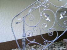 Der runde Erkerturm über alle Etagen rundet das Gebäude ab und lässt es schlanker wirken. Um die Höhe über 3 Geschosse nicht zu hoch erscheinen zu lassen wurde im Erdgeschoss ein Balkon mit schmiedeisernem Geländer eingeplant,