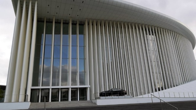 Das weiße Hauptgebäude hat im Grundriss die Form eines Auges. Die Stahl-Glas-Fassade wird von 823 weißen Säulen von 20 Metern Höhe und 30 Zentimetern Durchmesser optisch dominiert. Das Konzerthaus hat insgesamt einen umbauten Raum von 192.883 Kubikmetern und eine Gesamtfläche von rund 20.000 Quadratmetern. An der Stahl-Glas-Konstruktion wurden 2.500 Tonnen Baustahl verbaut, die verglaste Oberfläche liegt bei 5.000 Quadratmetern. Die Baukosten betrugen 113,5 Millionen Euro.